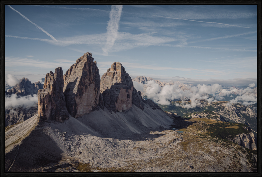 The Three Peaks of Lavaredo stand tall and timeless in this powerful mountain photography print. As one of the most famous landmarks in the Dolomites, they represent endurance, freedom, and awe-inspiring beauty. A perfect Dolomites fine art print for anyone drawn to the Alps and alpine landscapes.