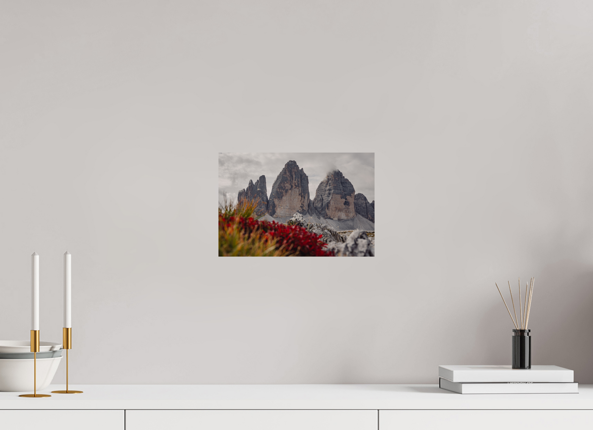 This fine art print of the famous Drei Zinnen (Three Peaks of Lavaredo) in the Dolomites captures the raw majesty of one of Italy’s most iconic mountain ranges. It symbolizes persistence and patience – after an entire hike without photos due to an empty battery, I returned to this exact spot to finally capture the vision I had in mind. Perfect as Dolomites wall art, this mountain photography print brings strength and determination into your home.