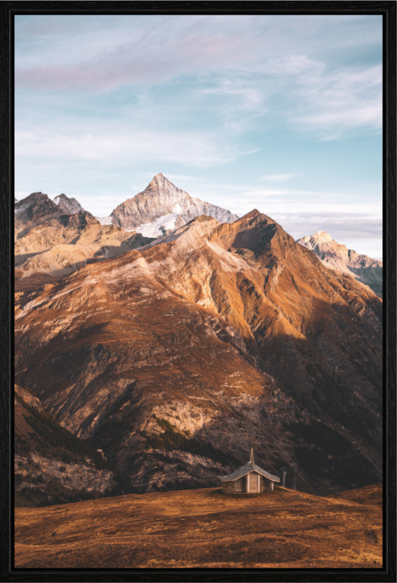 Captured in complete stillness just after sunrise in Zermatt, this Swiss mountain photography print brings depth, silence, and breath into any space. Layers of ridgelines, clouds, and light create a sense of peace. A perfect addition to any nature-inspired interior.